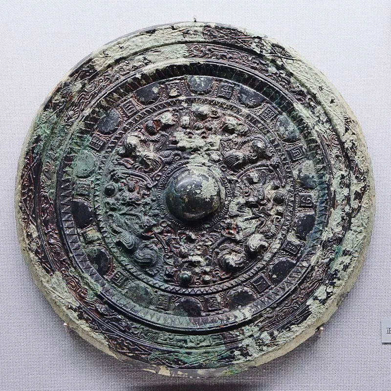 紀元前771年から紀元前221年にかけての春秋戦国時代は、諸国が互いに争いながらも文化交流が盛んになり、思想・宗教・宇宙観が急速に発展した時代でした。この時期の鏡には、鹿・虎・鳥などの禽獣が四方に配置された図像が現れます。これらは後の四神と同じ配置を思わせるものの、まだ体系化された四神思想ではなく、各地の霊獣信仰が鏡という祭祀具の中で「方位」と結びつき始めた段階といえます。