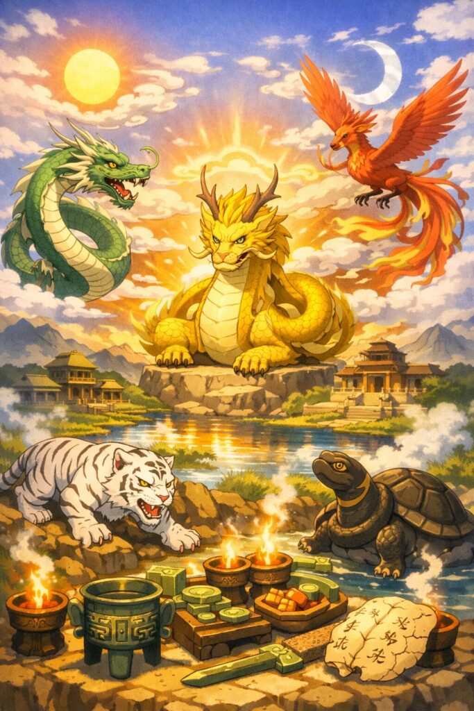 つまり、四神思想は単なる神獣の分類ではなく、宇宙・自然・政治・宗教を統合する巨大な思想体系であり、中国文明の世界観そのものを形づくる基盤となりました。
