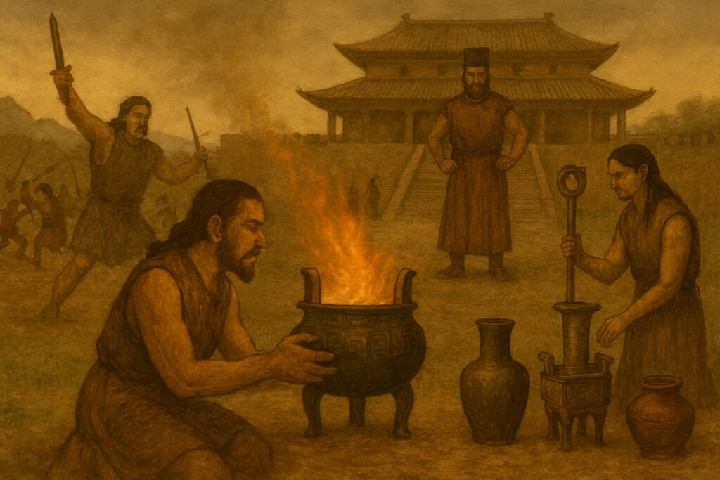 二里頭文化の都市が静かに姿を変えていく中、黄河の大地には新しい力が芽生えていました。
