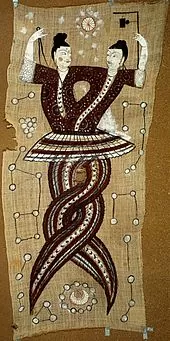 大洪水が起きたとき、伏羲と女媧の二人だけが生き延び、人類の始祖になったという伝説が中国各地に残されています。黄河流域は当時湿地が広がり、人が住めるようになったのは、禹(う)という英雄が治水に成功してからだと伝えられています。この功績によって禹は政治的権威を得て、夏王朝を開いたとされています。
