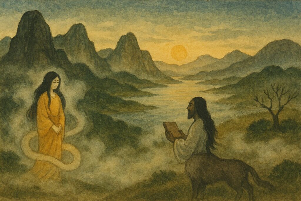 三皇の時代は、天地がまだ柔らかく、人々が自然と対話しながら暮らしていた黎明期です。伏羲は八卦を示して自然の理を伝え、女媧は大地の裂け目を修復して生命を守り、神農は草木と語り農耕と薬草の知識を授けました。こうした三皇の働きによって、人々は自然と調和して生きるための基礎を得て、文明の最初の芽が育まれていきます。