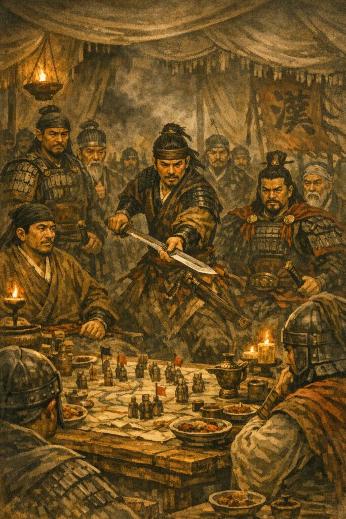 宴が始まると、項羽は表向きは劉邦を歓迎しながらも、内心では疑念を捨てきれません。
