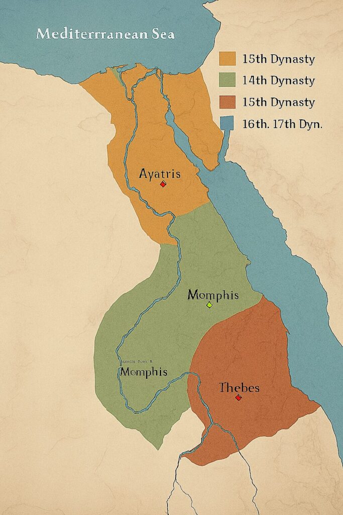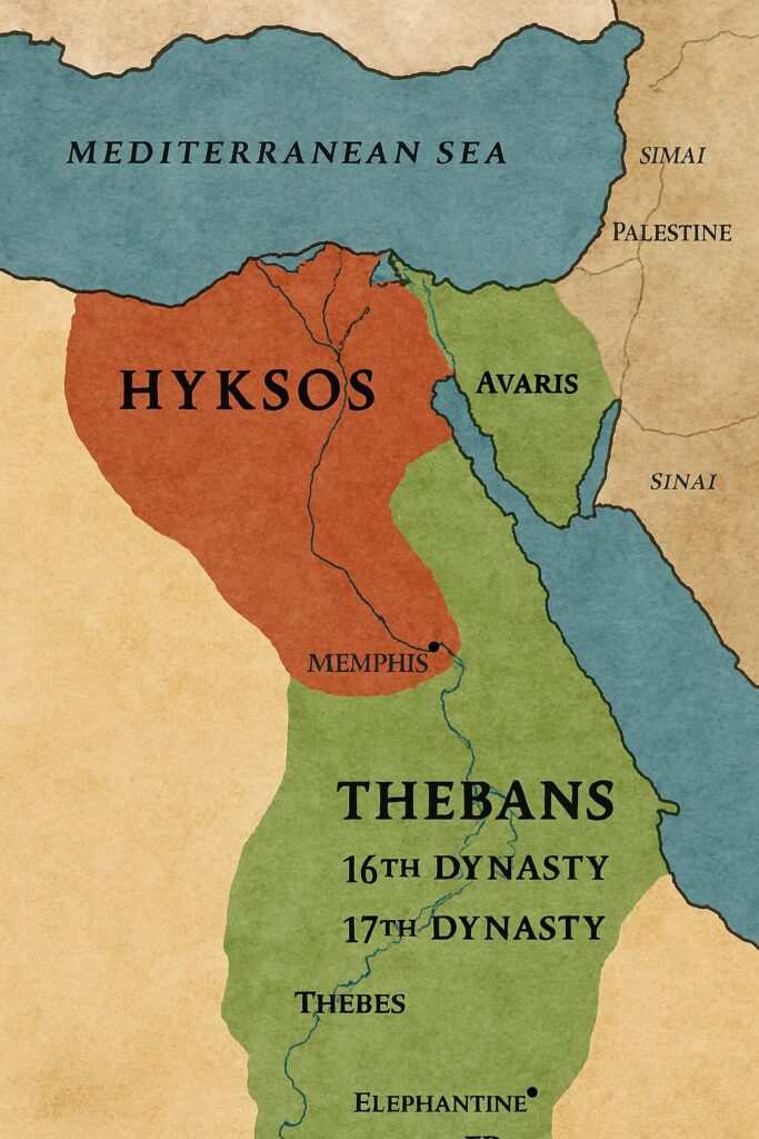 北部がヒクソス第15王朝、南部がテーベ第17王朝