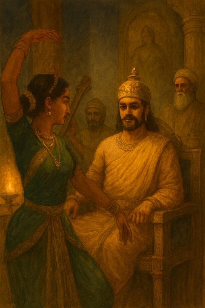 アガニミトラは、静かに王座へ歩み寄り、