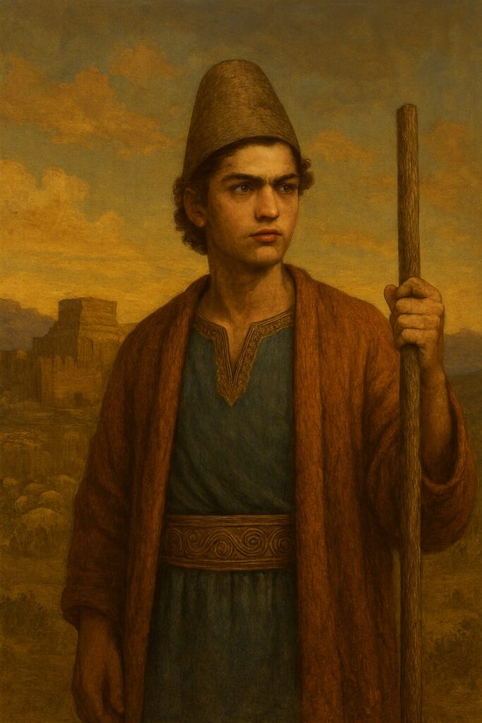 この頃はまだ羊飼いの家に育つ、名もなき少年でした。