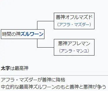 ズルワーン教は、ゾロアスター教の分派で最高神ズルワーン神を崇拝する宗教。