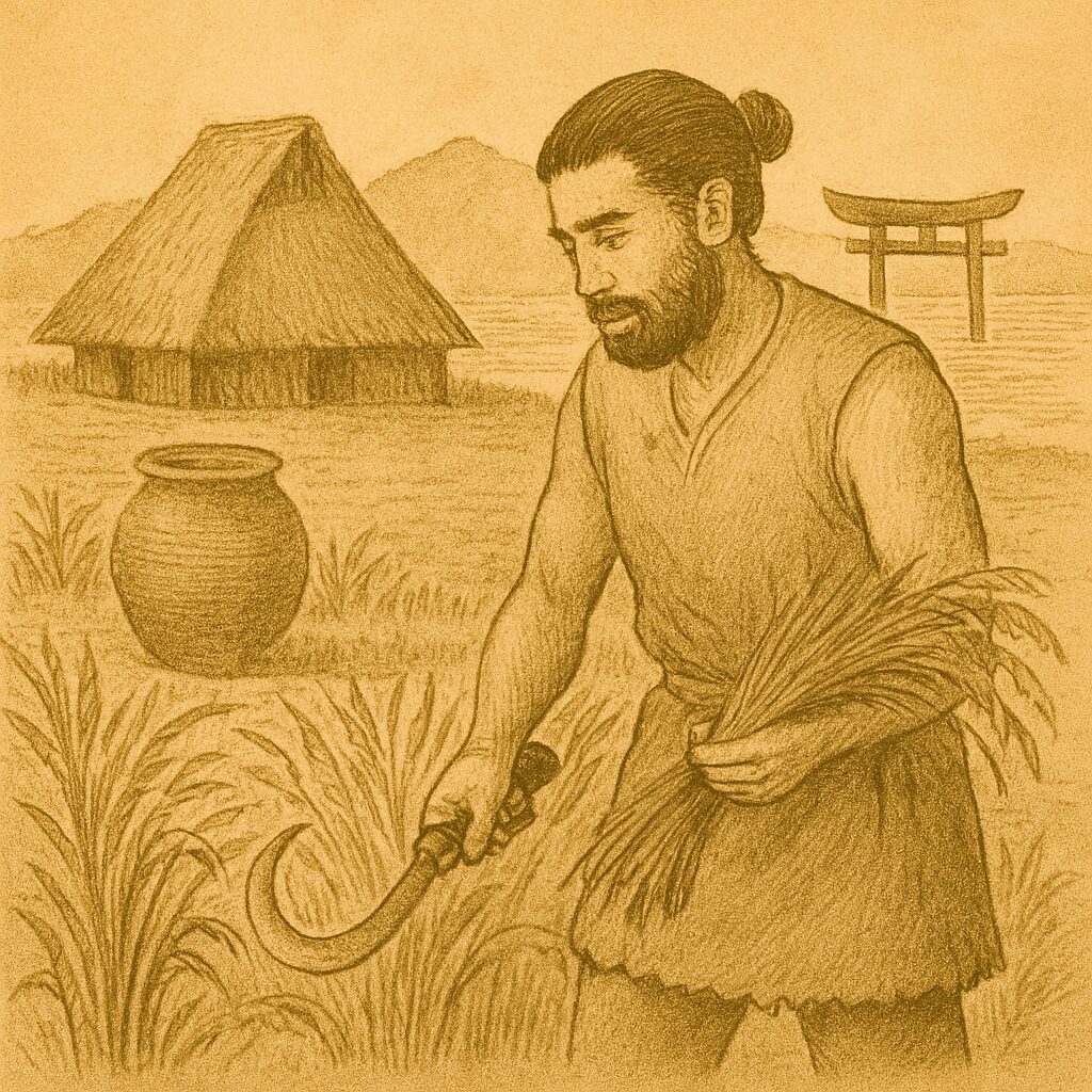 稲作は、縄文の人々が営んできた採集中心の生活とは異なり、土地を耕し、水を引き、季節ごとに共同で作業を行うことを必要としました。田を作るには人手が要り、収穫を守るには村の協力が欠かせません。こうして、弥生の渡来民がもたらした農耕文化は、列島の社会構造そのものを変えていきました。村落はより大きくまとまり、共同体の規律が生まれ、やがて首長が現れ、祭祀や政治の中心が形づくられていきます。