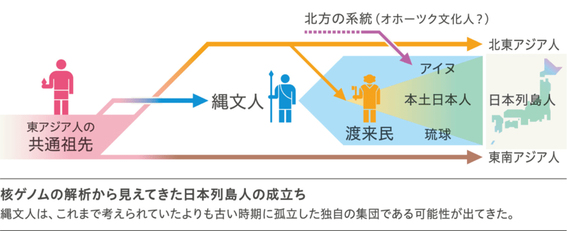 遺伝的にも文化的にも、日本列島は単一の起源を持つ民族ではありません。縄文の深い系統、弥生の大陸系、そしてその後も続いた複数の渡来の波が重なり合い、地域ごとに異なる混ざり方をしながら、現代の日本人が形づくられていきました。北海道や琉球に縄文の痕跡が濃く残るのも、関西と東北で遺伝的な構成が異なるのも、こうした多層的な歴史の結果です。