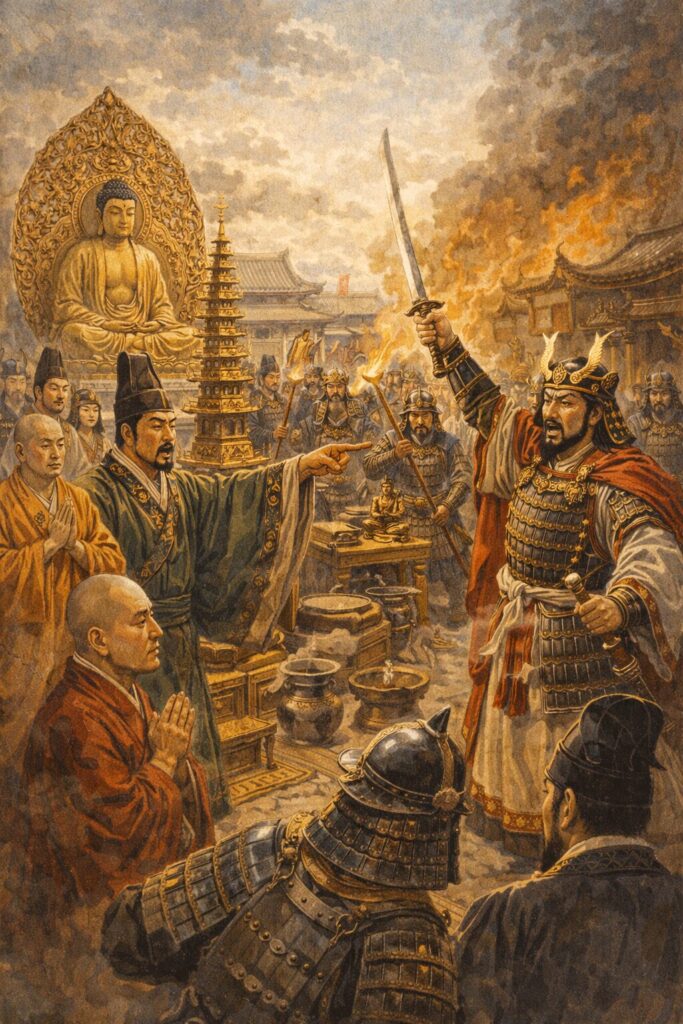 仏教をめぐる対立の中で力を失っていきます。