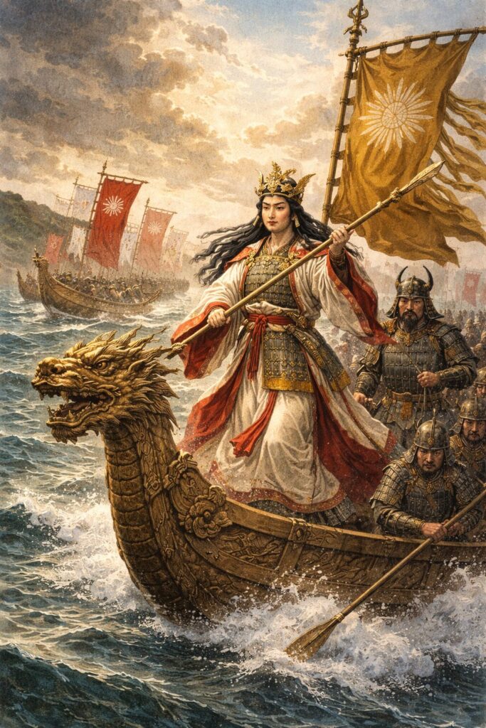 皇后の遠征は、史実と伝承が交錯する出来事ですが、