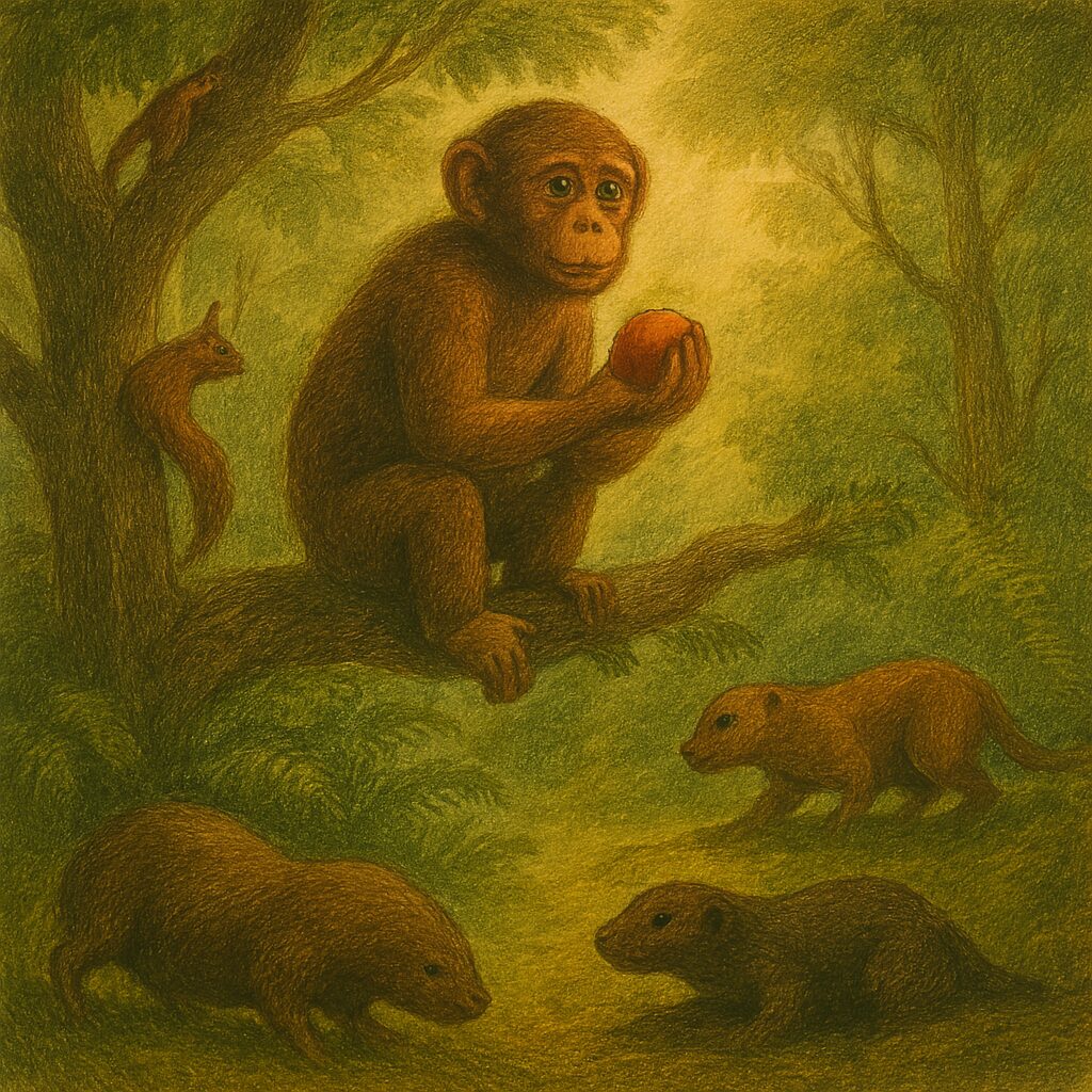 ある系統の霊長類は、木から地上へと降り立ちました。