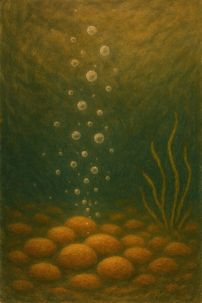 原始の海には、細胞膜を持つ単純な生命が漂い、分裂を繰り返しながら、少しずつ多様性を広げていました。エネルギーを得るために、周囲の化学物質を利用し、酸素を必要としない“嫌気性”の生き物たちでした。