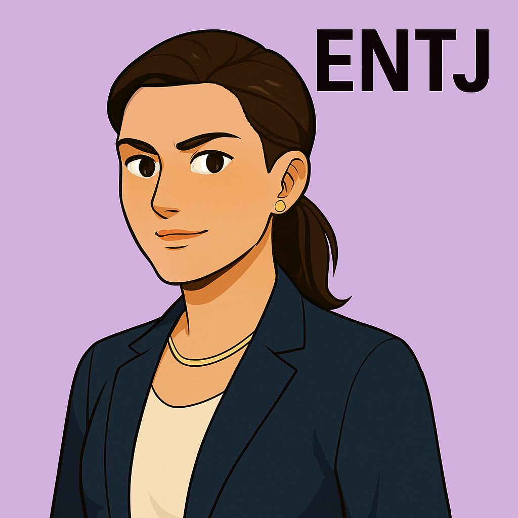 ENTJ型は外向的思考(Te)を主機能とし、内的感情(Fi)が劣勢に位置するため、感情よりも合理性・効率性・成果を優先する傾向が強いタイプです。