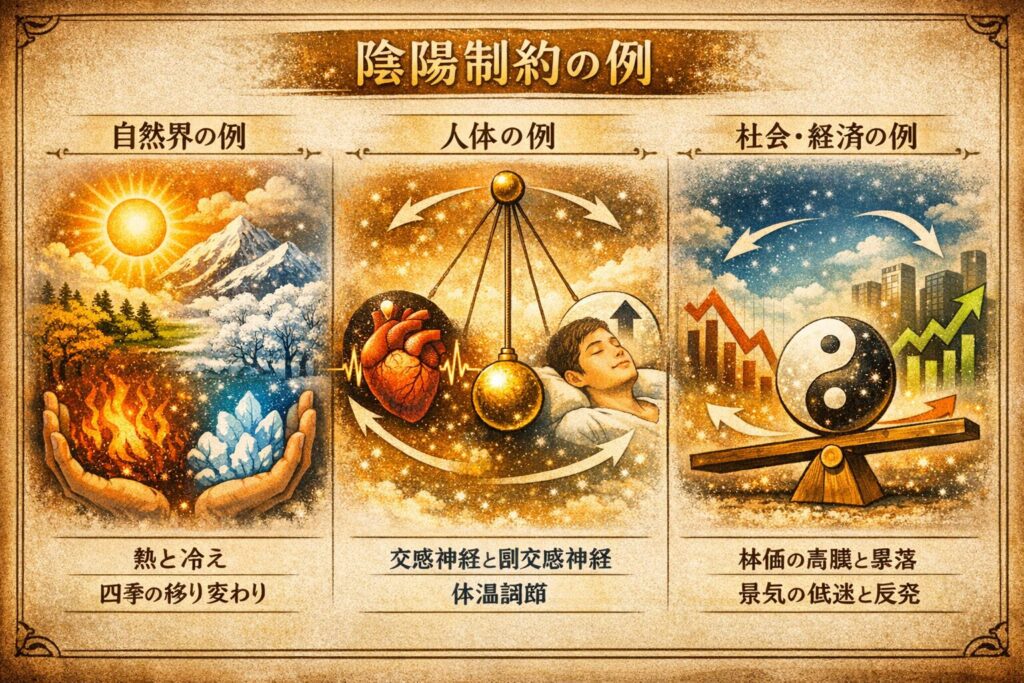 自然界は、陰と陽のどちらか一方に偏り続けることを決して許しません。 その根底には、陰陽制約という“極端を抑え、中庸へ引き戻す”働きが常に作用しています。
