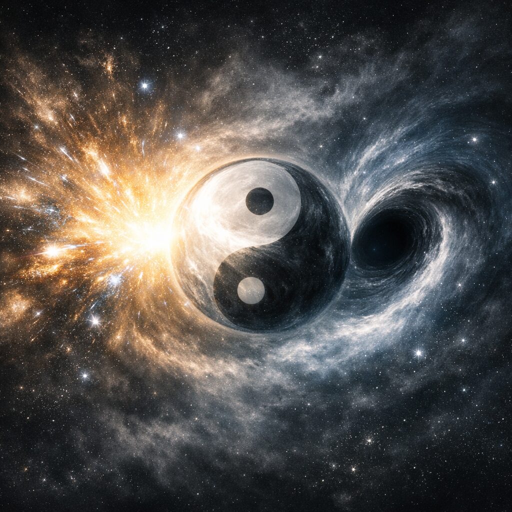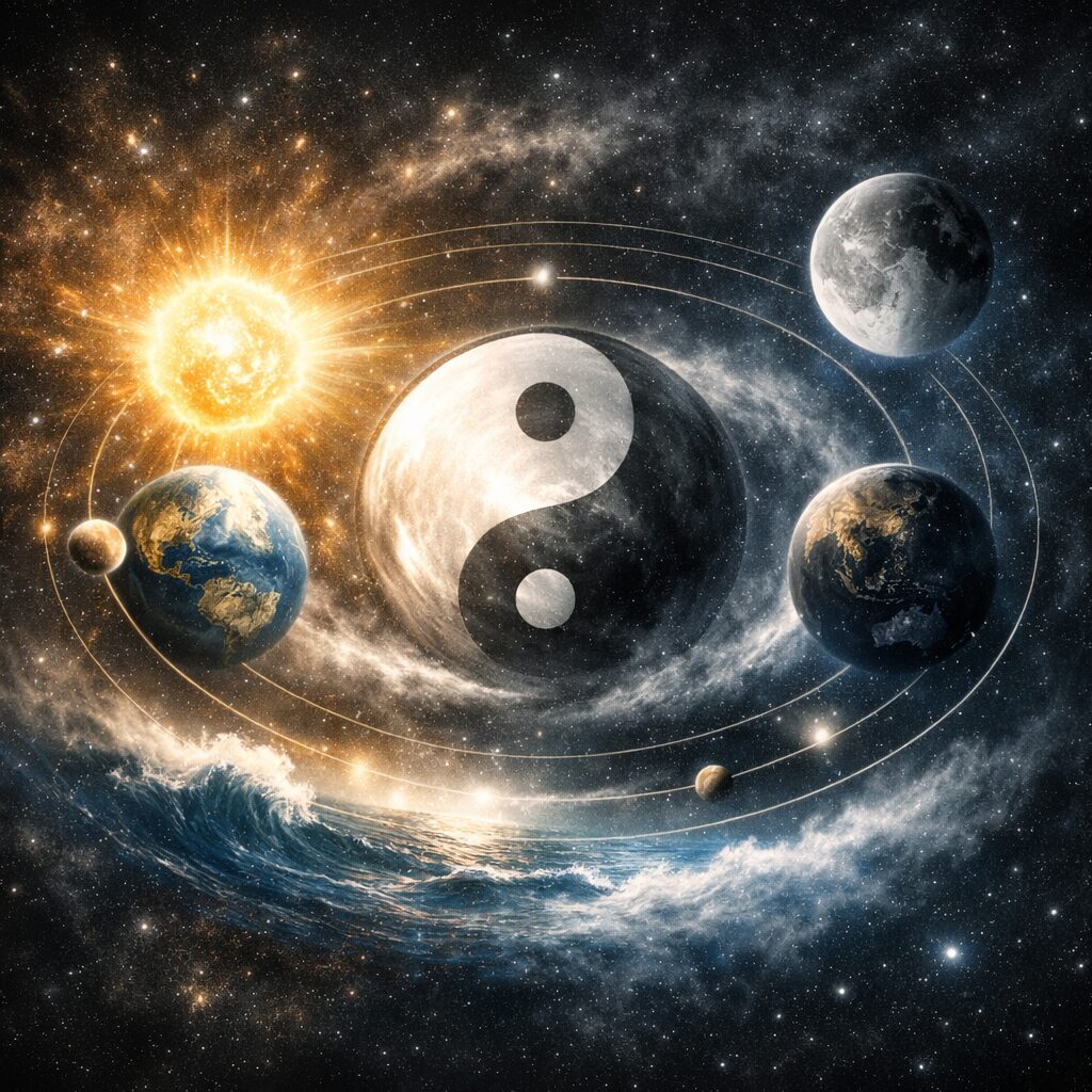 宇宙は静止した空間ではなく、陰陽が交代しながら絶えず動き続ける巨大な生命体であり、その内部で星々は太極図の一部として呼吸し、脈動し、循環しています。