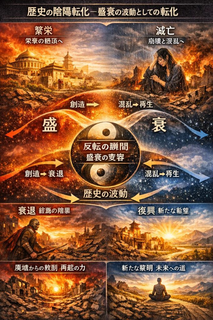 歴史は直線ではなく、 陰陽の反転によって進む波動的運動です。