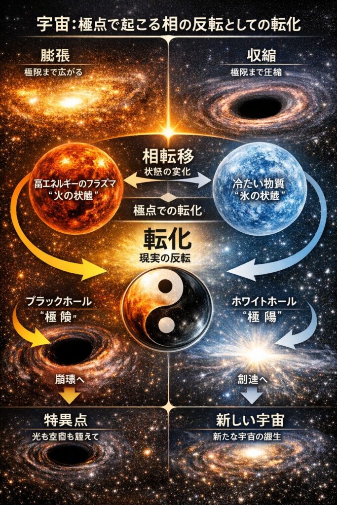 宇宙は、直線的な時間の流れではなく、 極と反転の連鎖によって相を変え続ける存在です。