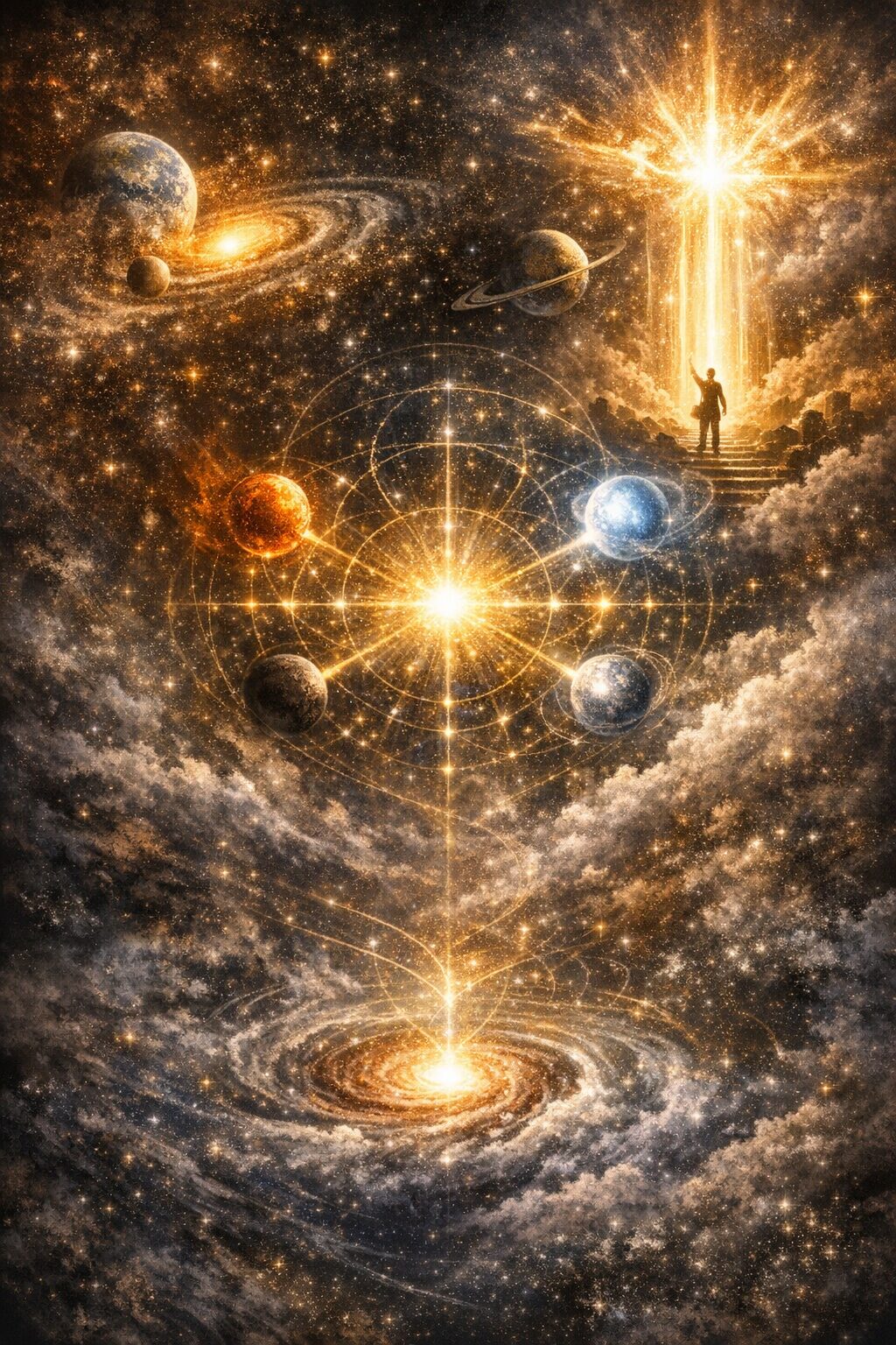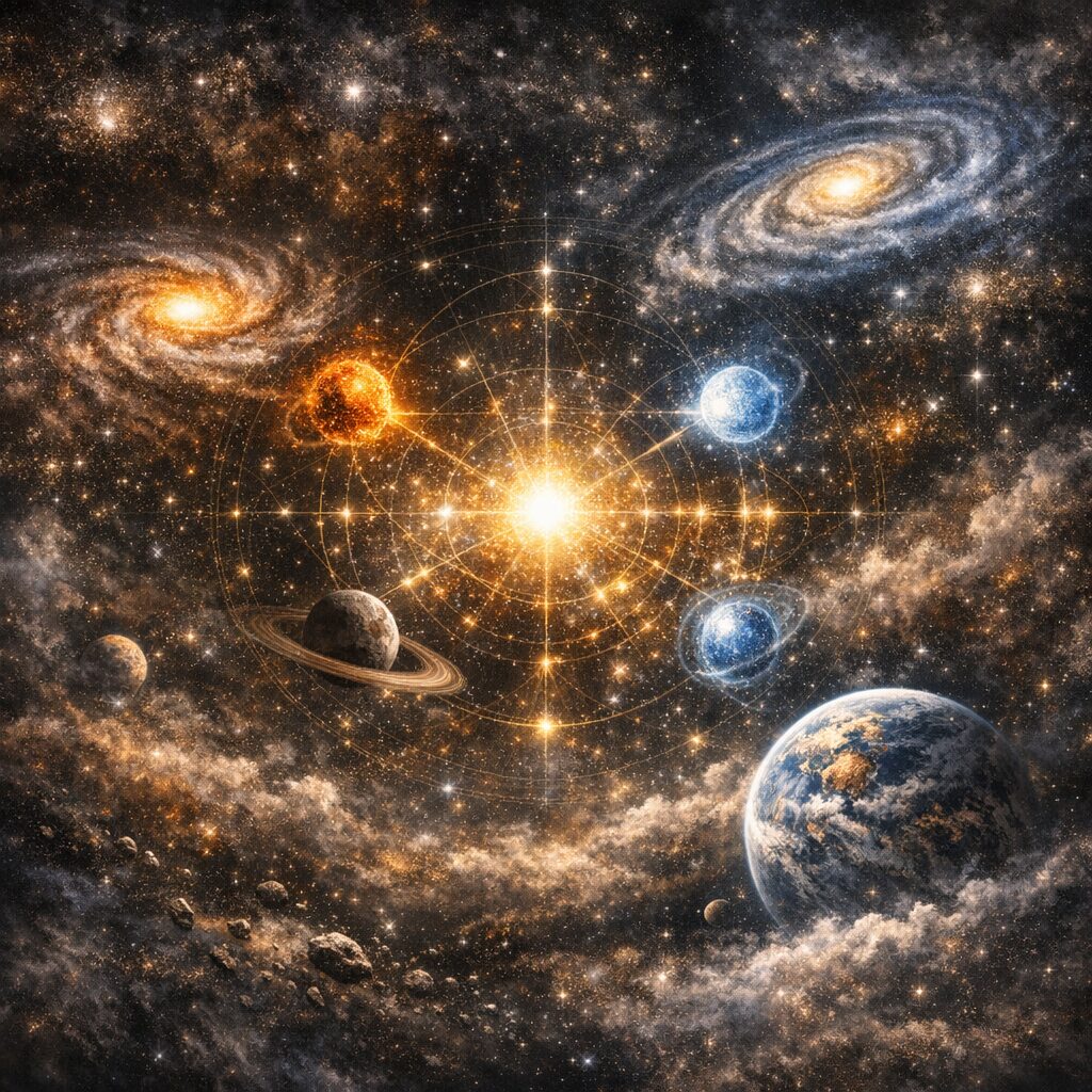 宇宙の誕生から文明の転換まで、すべては「結び → 交換 → 循環 → 転化」という同じ流れを辿ります。この四原理を軸に宇宙を読み解くと、宇宙は巨大な生命体のように脈動し、歴史は呼吸するように興亡を繰り返し、神話はその深層意識の夢のように浮かび上がります。そして私たち自身の心の動きもまた、この四原理のリズムに従っていることが見えてきます。