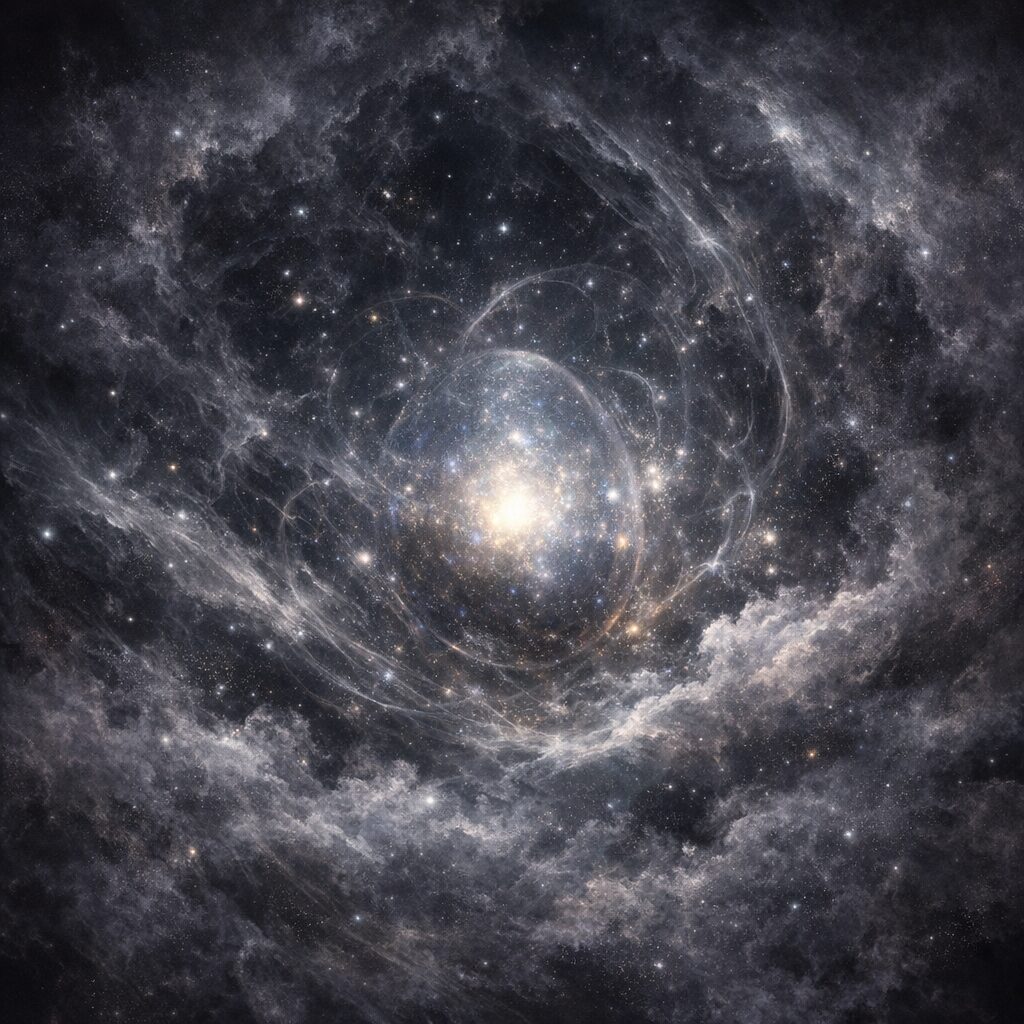 この根源層では、宇宙の全構造がすでに潜在的に“結ばれて”います。星々の誕生も、生命の出現も、文明の興亡も、すべてはこの層に折り畳まれた可能性が展開していくプロセスにすぎません。宇宙の最初の一歩は「分かれる」ことではなく、「結ばれている」ことなのです。 分化は結びから生まれ、秩序は混沌から生まれ、光は闇の内部から立ち上がります。 この「結び」の原理こそが、宇宙の生成の根本にある静かな胎動であり、すべての始まりを支える見えない基盤です。