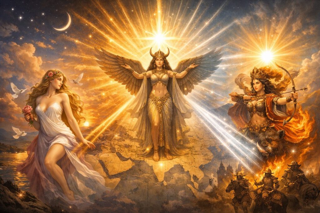 今回はその流れをさらに深く掘り下げ、金星の象徴が文化や宗教の枠を超えてどのように変容し、女神像の精神的・哲学的な意味を形成していったのかを整理していきたいと思います。