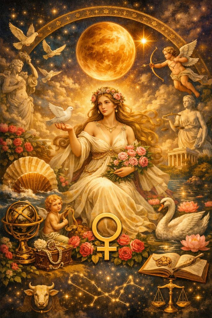 占星術における金星は、愛、美、調和、そして人と人との結びつきを象徴する星です。古代から「愛と美の女神ヴィーナス」の名を冠して呼ばれてきたように、金星は人の心の柔らかい部分、感受性や芸術的な感性を司る惑星とされています。私たちが何に惹かれ、どんなものを美しいと感じ、どのように愛を表現するか――その傾向を示すのが金星の位置なのです。