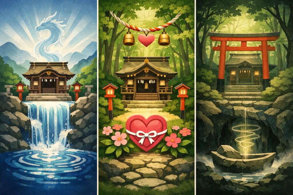 そして本宮と奥宮の中間に位置するのが結社です。ここには磐長姫命が祀られ、縁結びの社として知られていますが、単なる恋愛成就の場ではありません。谷の流れの途中に置かれたこの社は、天の水と地の水が交わり、生命の流れが結ばれる“中間の場”としての意味を持っています。和泉式部がここで祈りを捧げたという逸話は、まさにこの「結び」の力を象徴するものです。結社の空間は、奥宮の重さと本宮の明るさの間にあり、柔らかく、しなやかで、どこか人間的な温度を感じさせます。