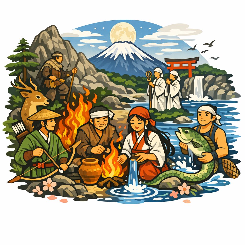 木花咲耶姫に関わる氏族をたどると、彼女が単なる「桜の女神」ではなく、山岳信仰・火山信仰・海上文化の交差点に立つ存在であったことが浮かび上がります。まず、彼女の父である大山津見神は日本列島の山々を総括する巨大な山霊であり、その子孫を称する山岳系氏族は、山の斜面や谷筋に暮らし、山の水脈・鉱脈・狩猟を基盤とした生活文化を持っていました。木花咲耶姫はその山霊の娘として、山の民の信仰体系の中心に位置づけられます。