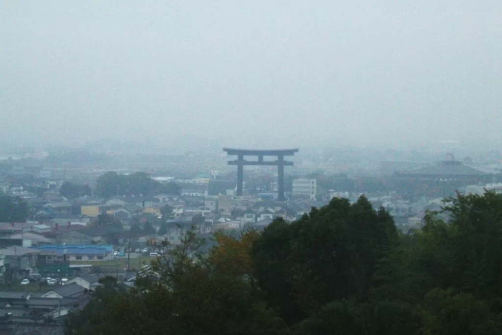 大神神社には高さ32.2mの巨大な大鳥居があり、昭和天皇在位60年を奉祝して昭和61年に建立されました。この鳥居は、古図にも“大鳥居”として記されていた場所に再び建てられたもので、かつて存在した巨大な結界を現代に復元するという意図も含まれています。地名としても「大鳥居」が残っており、古代からこの地点が神域の境界として認識されていたことがわかります。