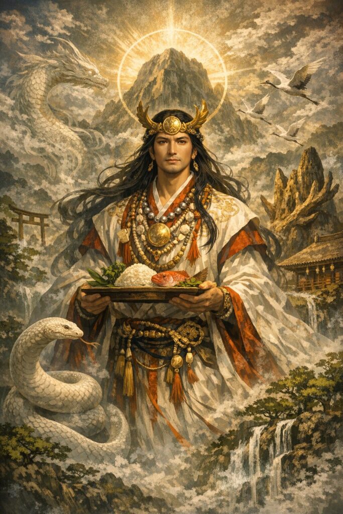 彼の名「御気持(みけもち)」は、神に供える御饌(みけ)を司る者を意味し、神と人の間を媒介する禰宜の象徴名でもあります。つまり大御気持命は、血統・婚姻・地政・象徴のすべての面で、神威を地上に降ろす“媒介者”として設計された存在であり、国津神世界の統合者としての役割を担っていたことになります。
