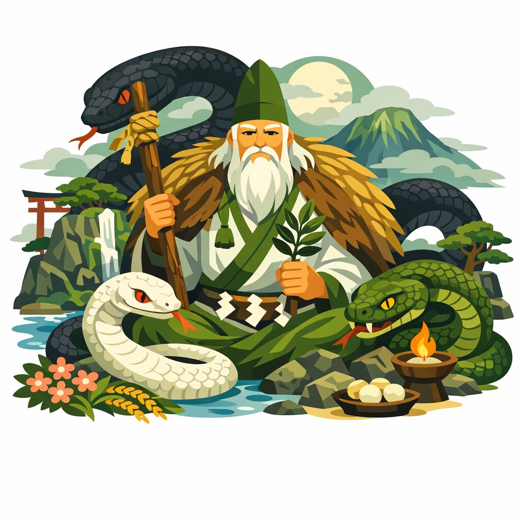 山は水を生み、霧を吐き、季節ごとに姿を変える。 その生命的な変容は、脱皮し再生する蛇のリズムと重なります。このため、山の神=蛇神という観念は、信仰の最も古い層で自然に成立しました。 大山津見神はその「山霊の総元締」であるため、当然ながら蛇神の中心に位置づけられます。