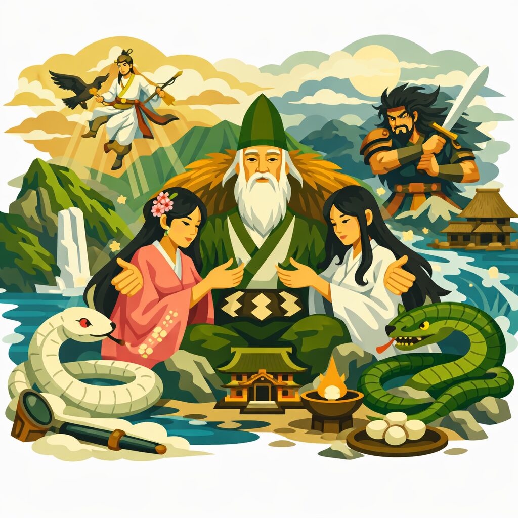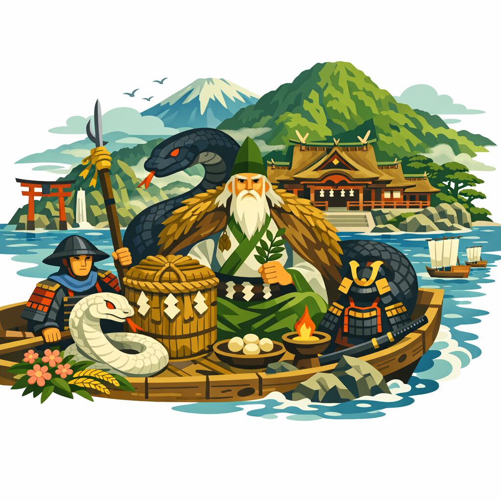 この三層が重なることで、 大山津見神は「山の神」でありながら「蛇神の王」としての性格を帯びます。