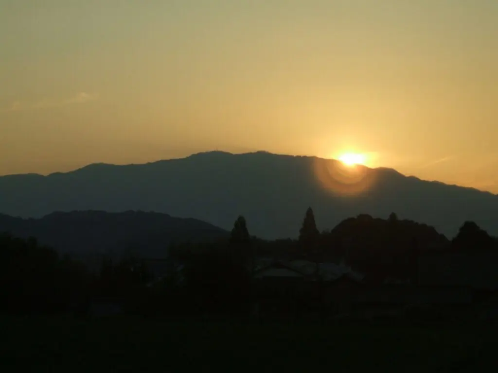 太陽が山の向こうへ姿を隠す直前のわずかな時間、