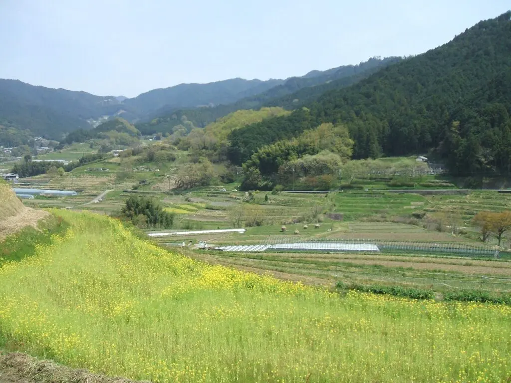 稲渕の高台に立つと、まだ水を張っていない棚田の曲線が、春の光と新緑の山々に抱かれるように広がっていました。梅の淡い色、菜の花の黄色、若葉の緑、そしてウグイスの声。それぞれが主張しすぎず、季節の移ろいを静かに描き出しています。