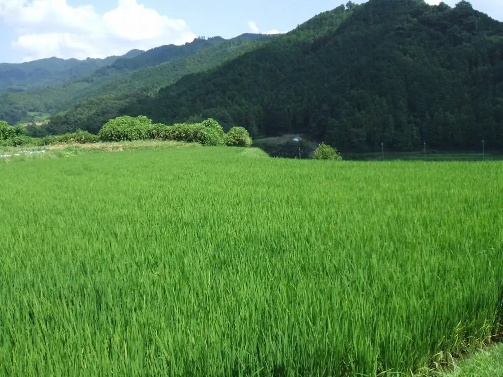 田んぼの稲の緑は力強く、深みを増した色合いで、風が吹くたびに大きな波のように揺れ動いていました。