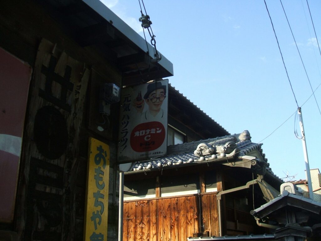 すると、人の気配がほとんどない小さな集落の中に、ふと昭和レトロな看板が目に留まりました。