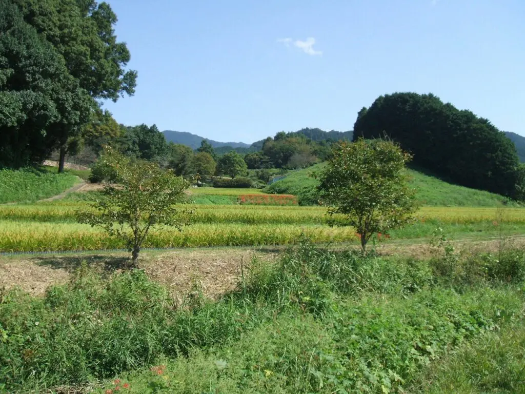 秋の明日香村を歩くと、夏の名残をわずかに含んだ温かさの中に、ひんやりとした澄んだ空気が混じりあい、季節が静かに移ろっていくのを感じました。山々は少しずつ色づき始め、夏の深い緑もやや色あせた緑が浮かび上がります。