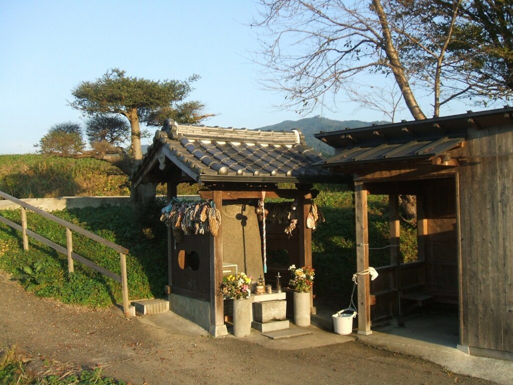 小さな祠と、その祠に寄り添うように建てられた小さな休憩所がありました。