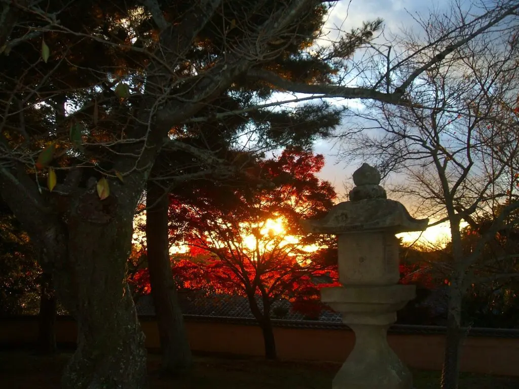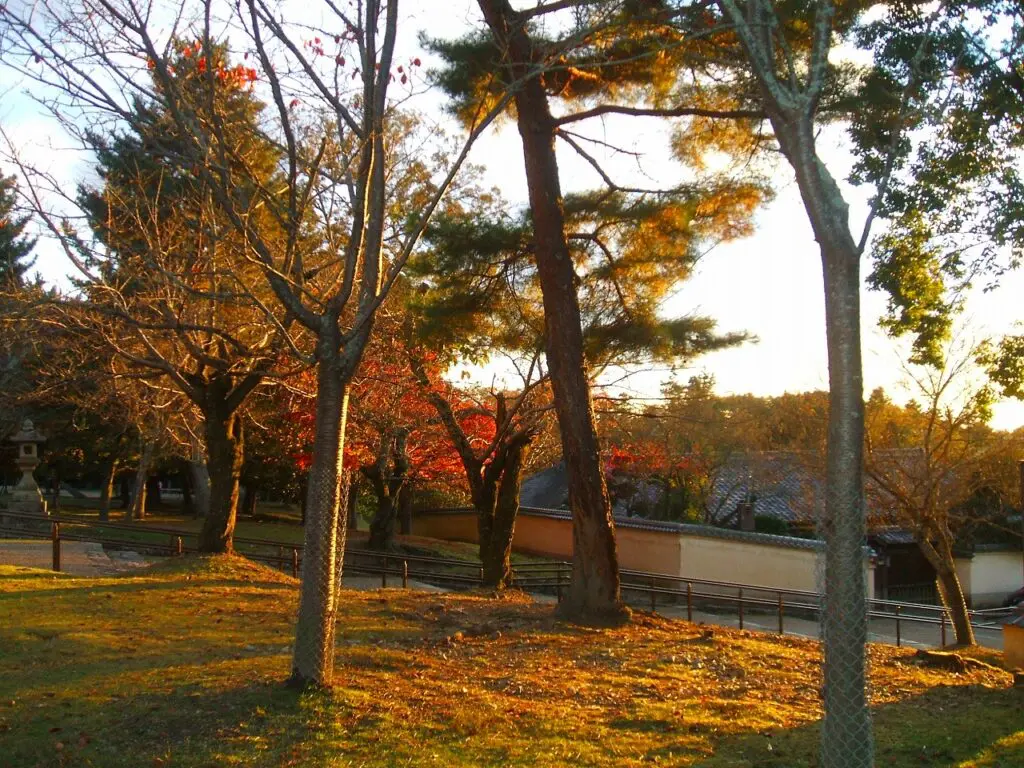 とくにこの日は、驚くほど人の姿がありませんでした。表門側のにぎわいが嘘のようで、「ここは本当に観光地なのか」と思ってしまうほどの静けさです。風が木々を揺らす音と、自分の足音だけが響き、夕日が紅葉を照らすたびに、景色がゆっくりと色を変えていきました。