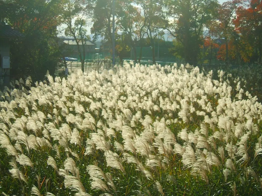 厚い雲間からこぼれるわずかな光を受け、ススキがまばゆいばかりに黄金色に光っていました。