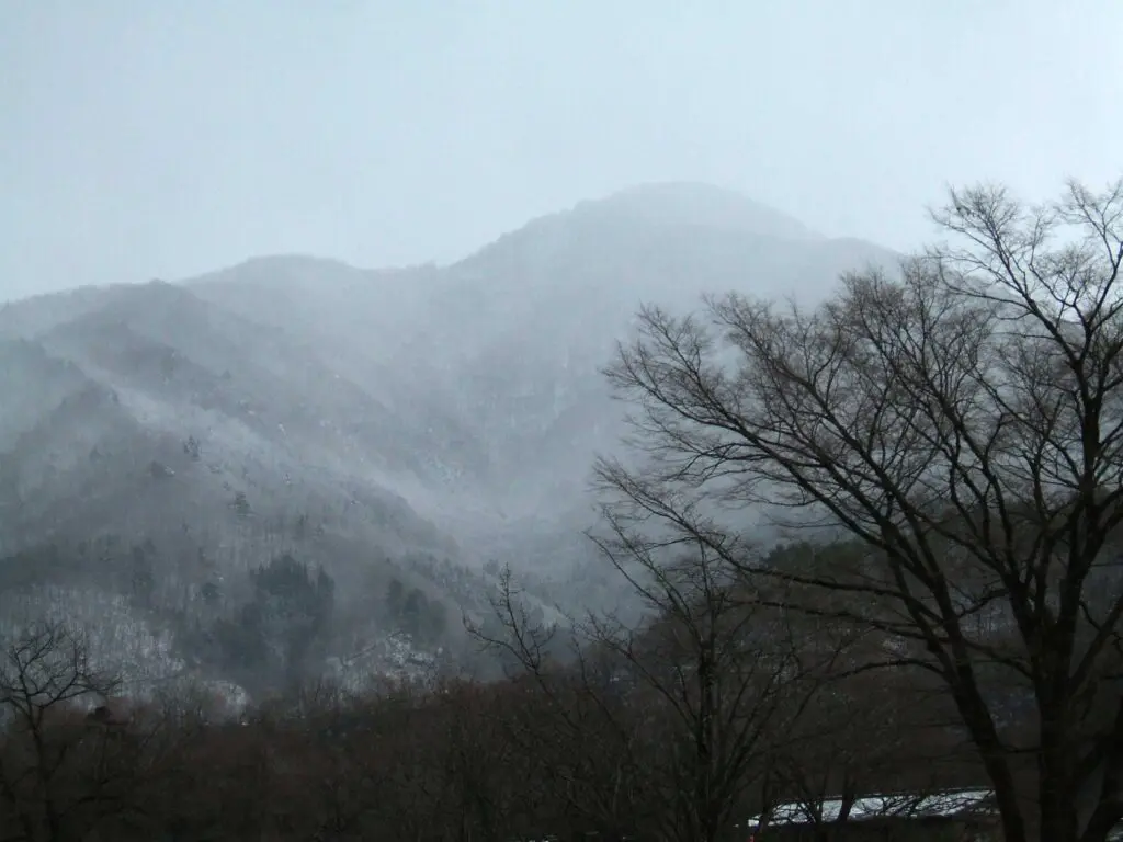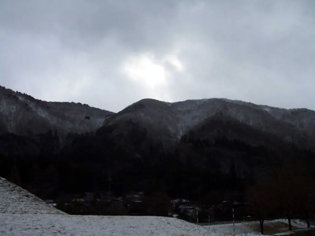 高山の冬特有の、どこか重たく沈んだような空が広がり、遠くの山並みは薄い靄に包まれていました。