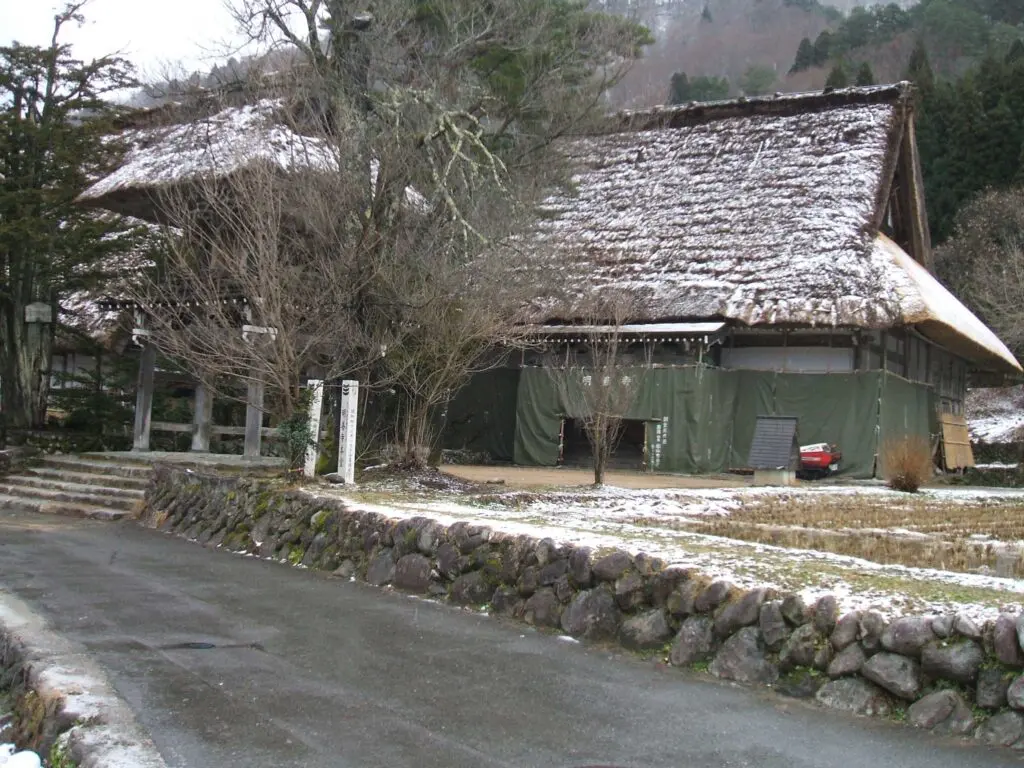 集落の中には、日本昔ばなしに出てきそうな屋根のお寺もありました。