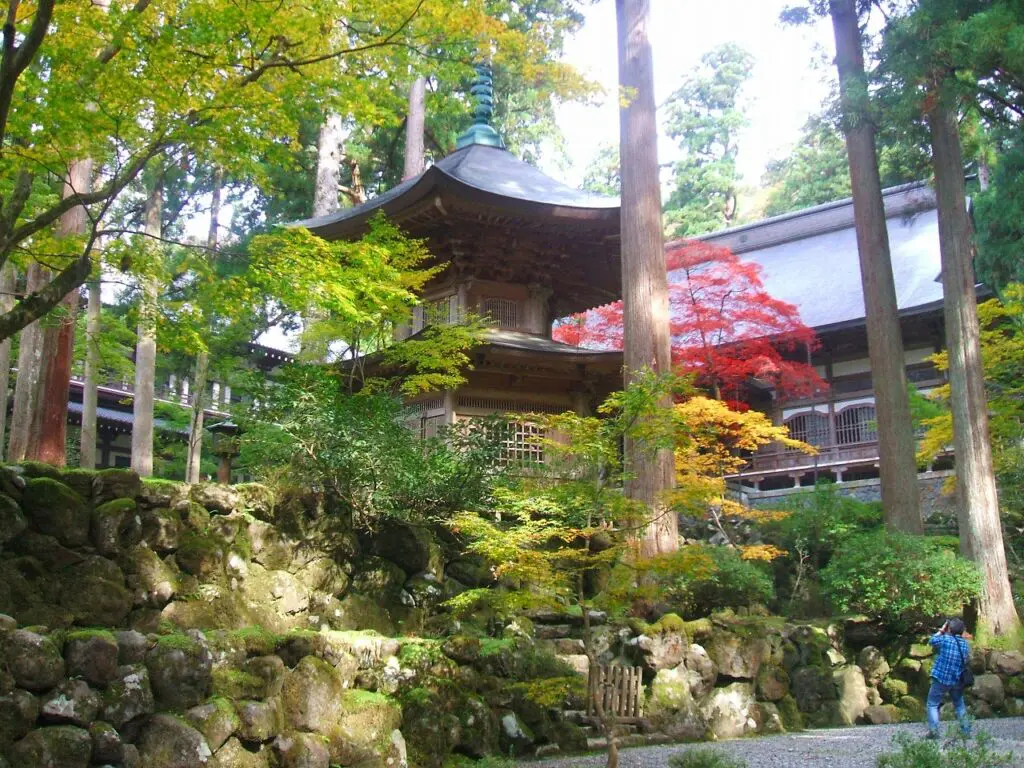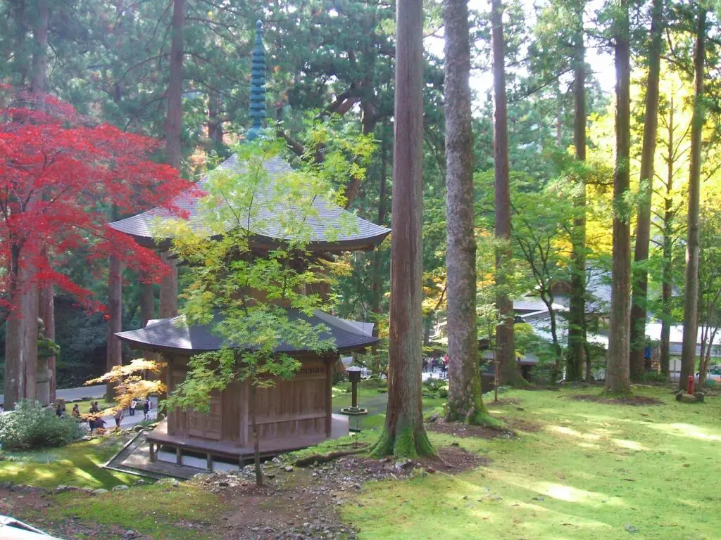 周囲を囲む杉木立の間から差し込む光が塔の表面に柔らかく反射し、訪れる者に静かな敬意を促すように感じられます。 塔の前に立つと、永平寺が積み重ねてきた長い年月と、そこに身を置いた人々の祈りや修行の重みが、静かに胸に響いてきます。