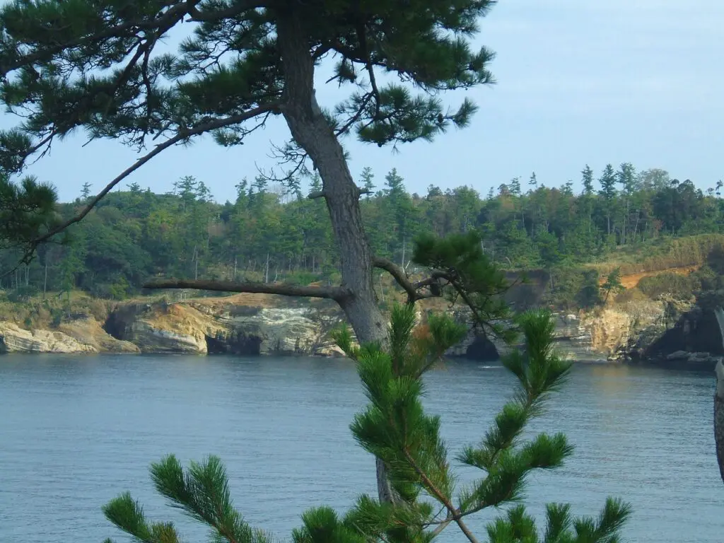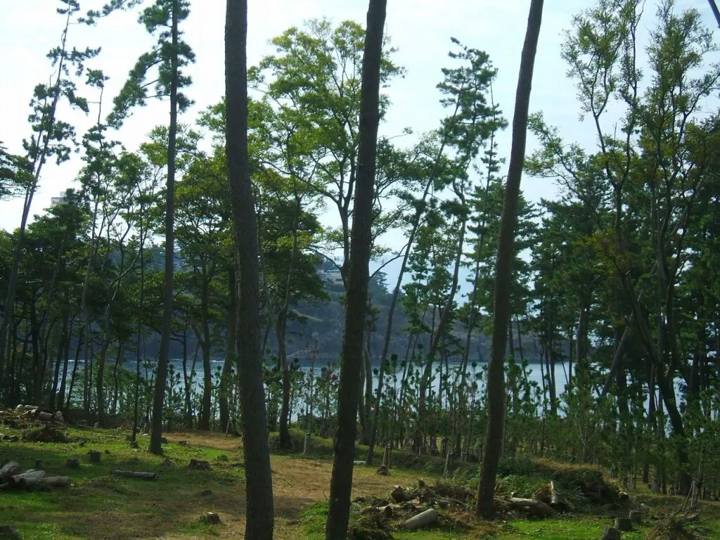 帰りはバス停までしばらく歩きます。海岸線には松並木が続いていて、潮風に揺れる枝がとても美しく感じられます。どこか懐かしいような風景で、ゆったりとした気分になります。