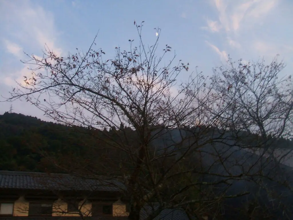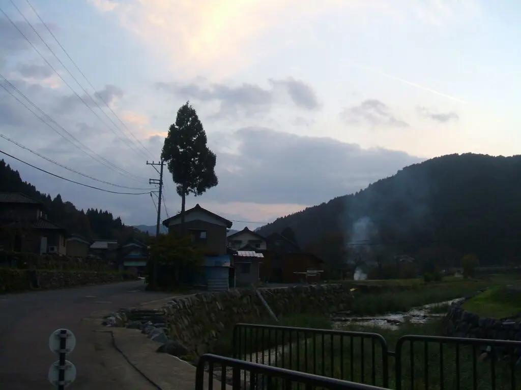 焚火の煙が夕暮れの空にゆっくりとたなびき、谷間にほのかなこおばしい匂いが漂っていました。 その光景を眺めていると、どこか懐かしい風景に出会ったような気持ちになります。 子どもの頃に見た田舎の夕暮れや、昔の日本の原風景がふっと心の奥からよみがえってくるようでした。