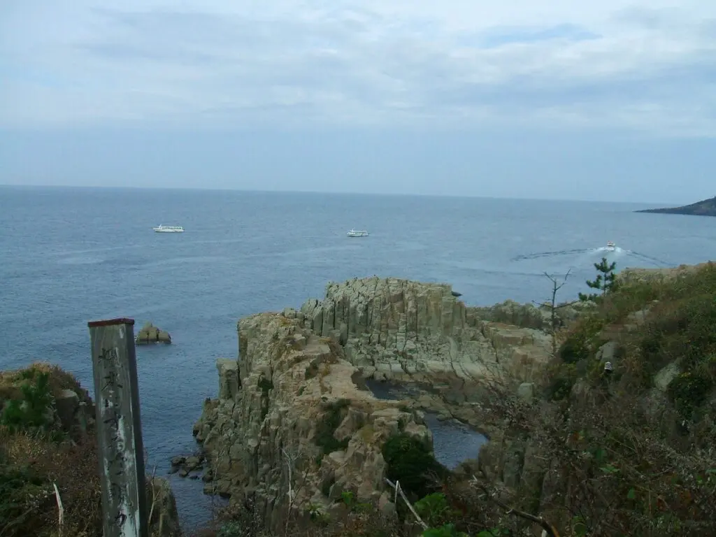 断崖の縁を歩いていると、ほんの少し足を踏み外すだけで海へ転落してしまいそうなほどの迫力があります。日本海の荒波が打ちつける音と、足元の岩肌のざらつきが、ここが自然の厳しさをそのまま残した場所であることを実感させてくれます。