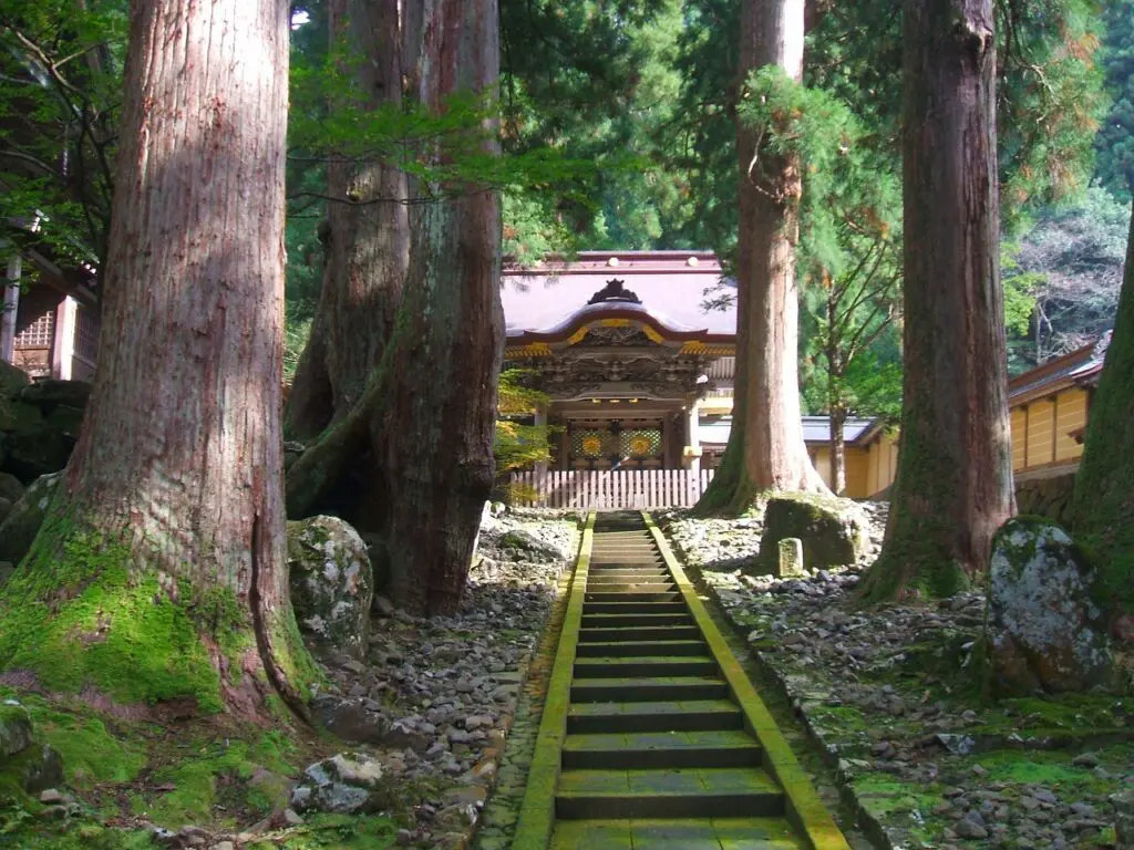 白山は日本三霊山(白山・富士山・立山)のひとつに数えられ、古代から崇敬の対象とされてきました。福井の僧・泰澄が天空に現れた白山神のお告げを受け、717年(奈良時代)に開山したと伝えられています。白山信仰の中心である白山神社には、白山比咩神(しらやまひめのかみ)・伊弉諾尊・伊弉冉尊が祀られています。