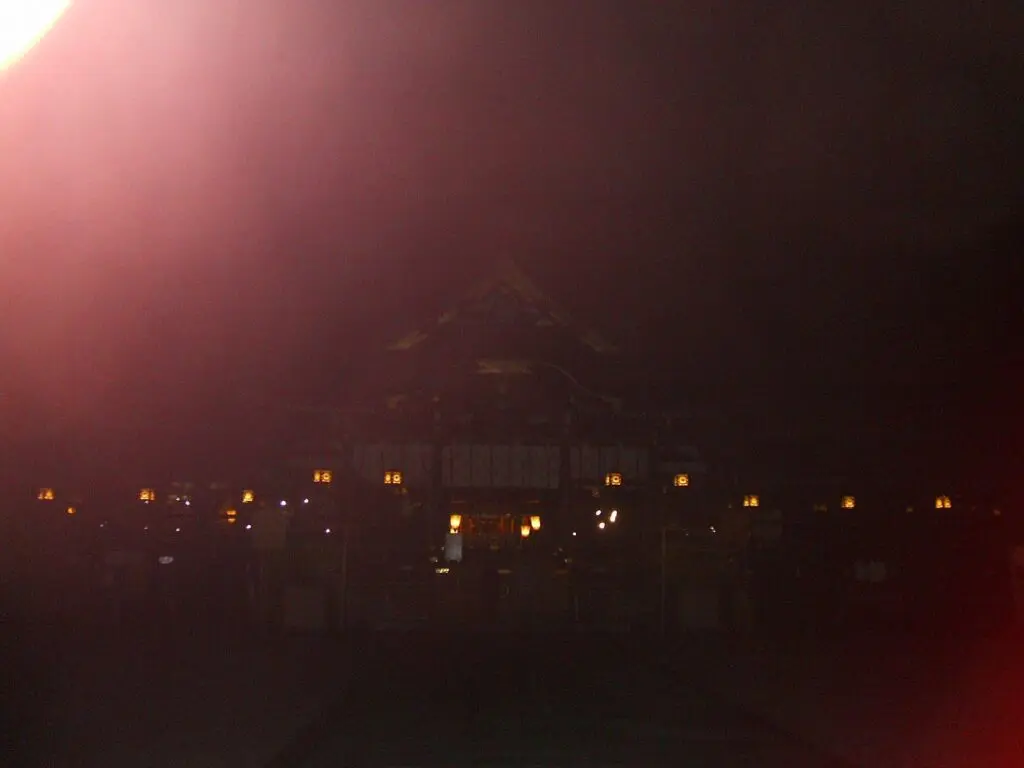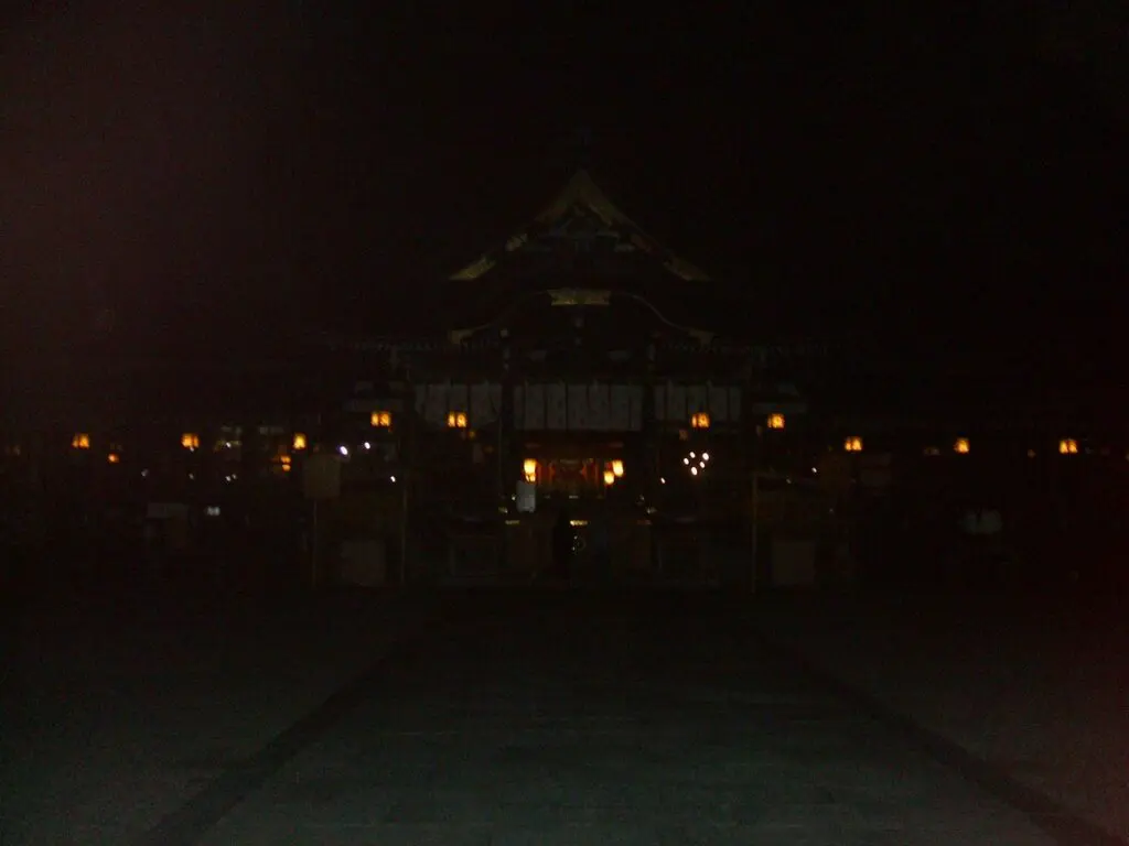 拝殿の前に到達すると、そこには誰の気配もありませんでした。灯籠の光だけが静かに揺れ、闇の中に淡い輪郭をつくっています。あまりの静けさに、まるで時間そのものが止まってしまったかのようでした。