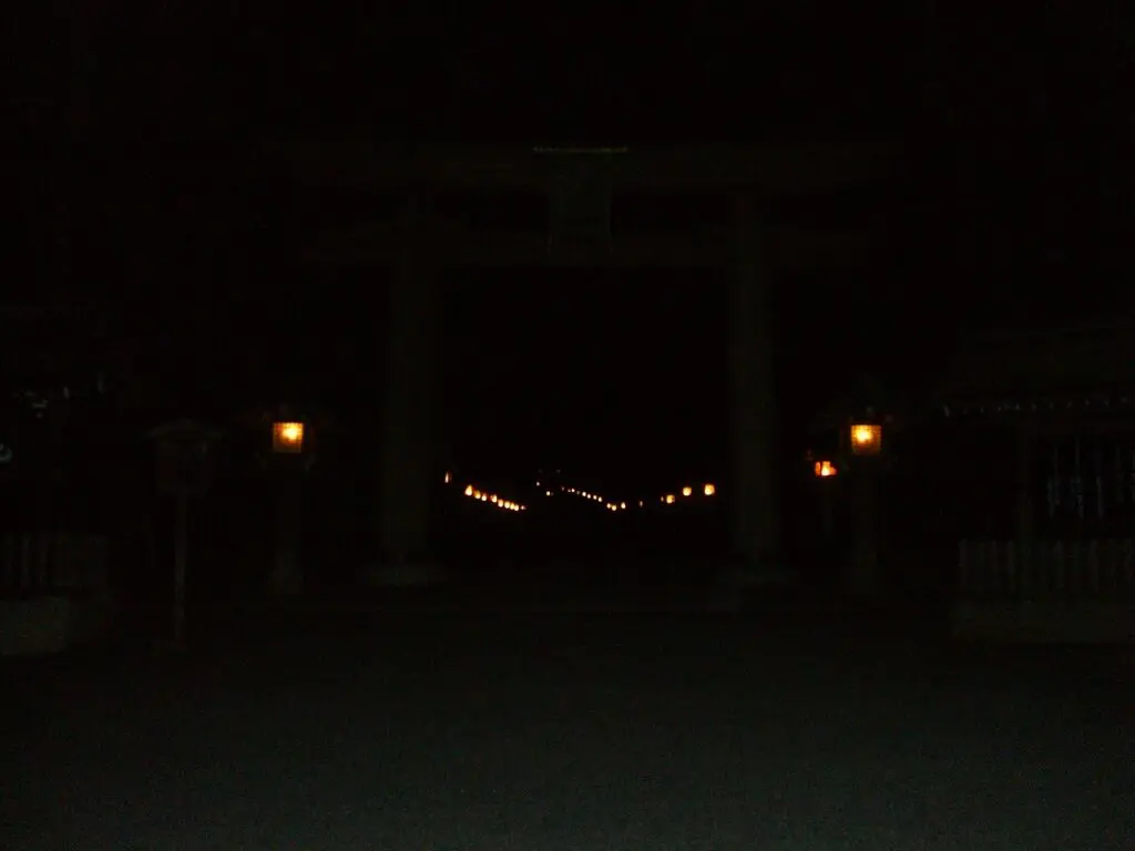 大きくまっすぐに伸びる参道の両側には灯籠が並び、その柔らかな光が闇の中にぽつぽつと浮かび上がっています。まるで古い時代の物語の中に迷い込んだような、なんとも幻想的な光景でした。