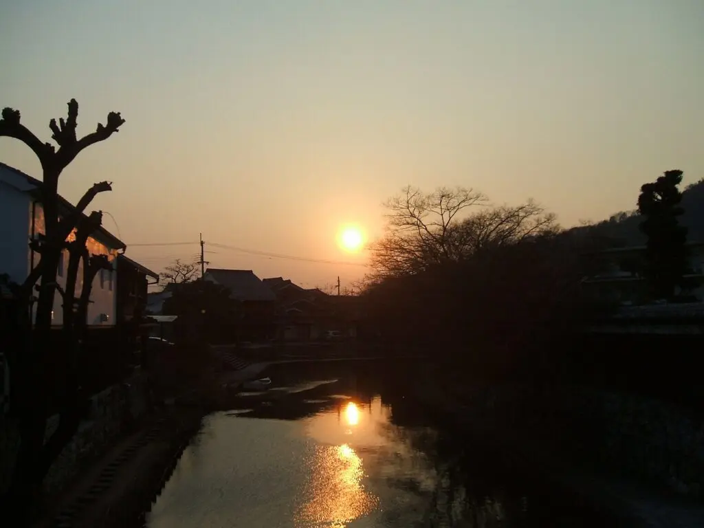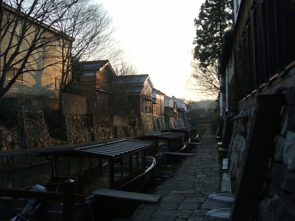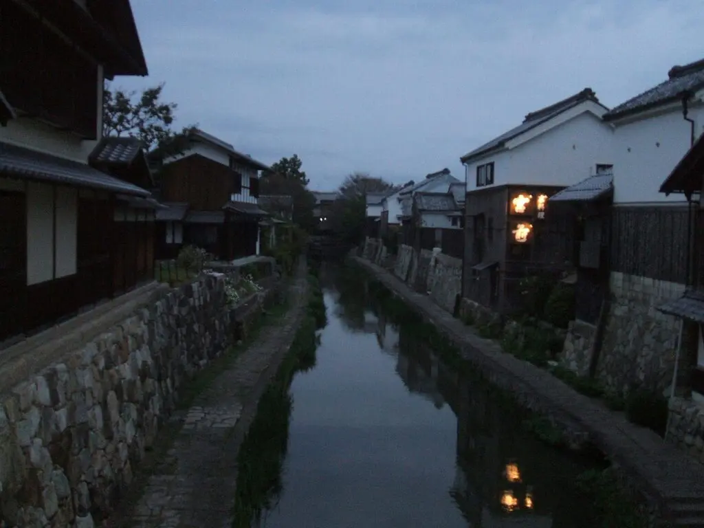 堀沿いの白壁の蔵や町家も、夕陽を受けてほんのり赤みを帯び、