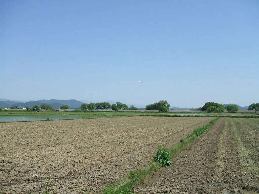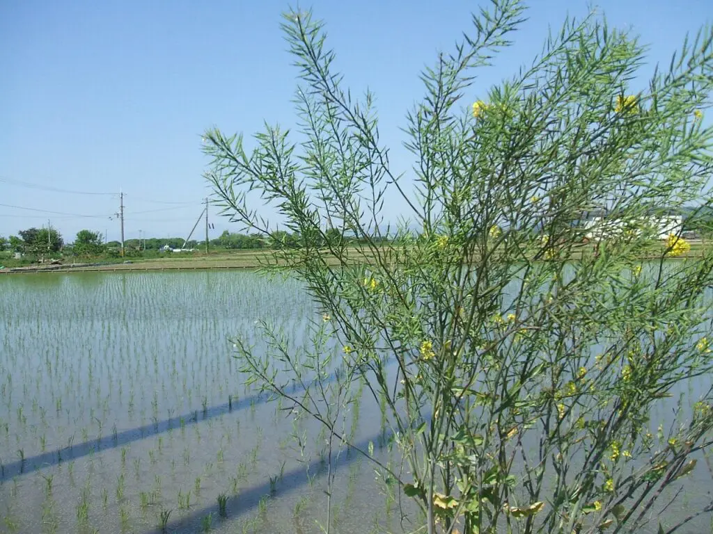 左右には畦道と草むらが続き、風が通るたびに草の匂いがふわりと漂ってきます。